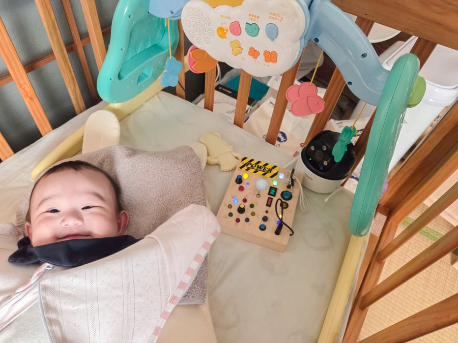 だから自分が何を何時にやったかまで確認可能。ミルクあげたっけ?おむつ替えたっけ?何時だっけ?も監視カメラを見れば一発で解決可能。意外に助かる。