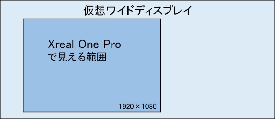 というのも確かにXreal One Proのディスプレイの解像度はフルHDしかなくて、これは俺がPC作業で求める3Kには全然足りないんだけど、ただ、Xreal One Proは首振りに対応できる。つまり常に全画面を映す必要もないんだ。