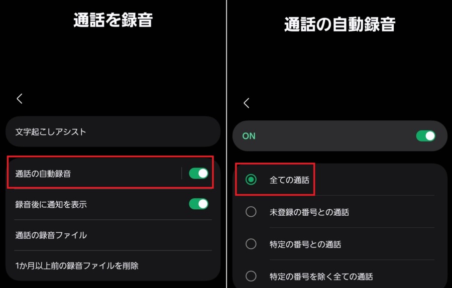 注意点として、GalaxyとAQUOSの通話録音機能は純正電話アプリでしか利用できない点に気を付けたい。