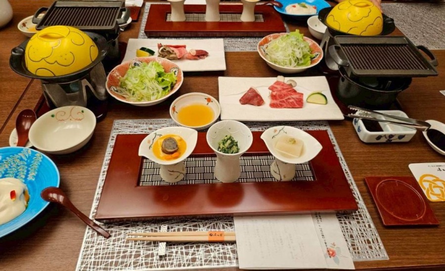 食事が出る個室の中には高そうな障子があるし、どこの馬の骨かもわからない国産牛を焼くためのミニ鉄板もある。
