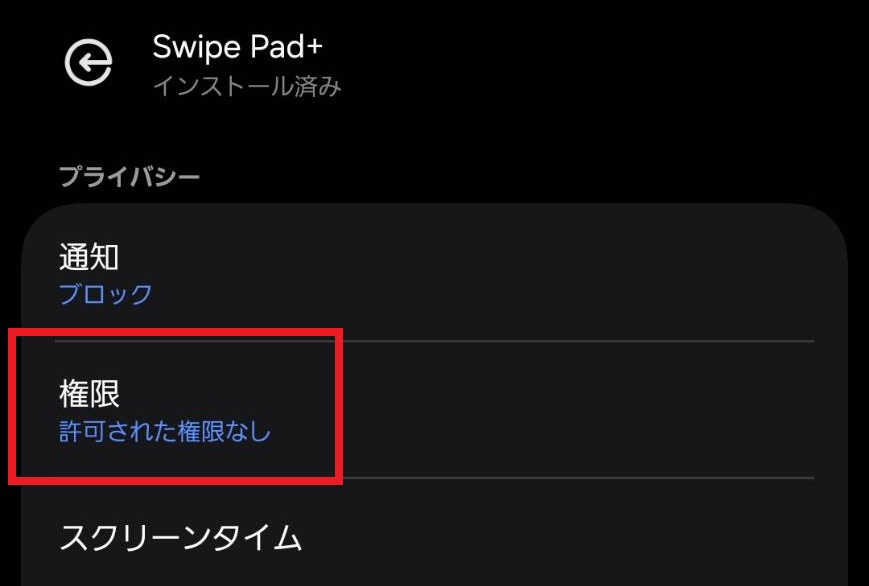 と思ったんだけど、SwipePad+の要求権限を確認すると「なし」になっていたし、