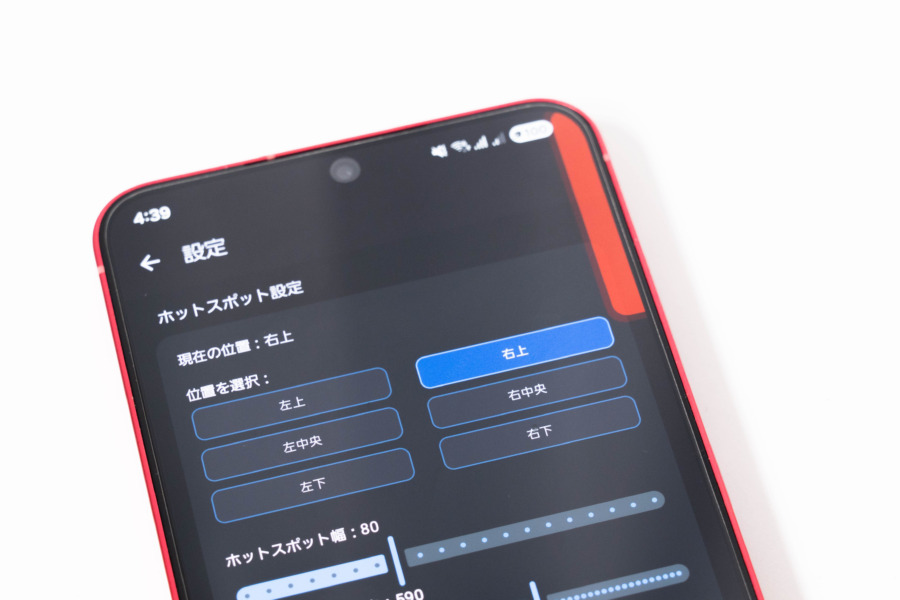 右手用に右上に設定すると左手で使う時にちょっと困る。右上と左上の2か所に設定したい。