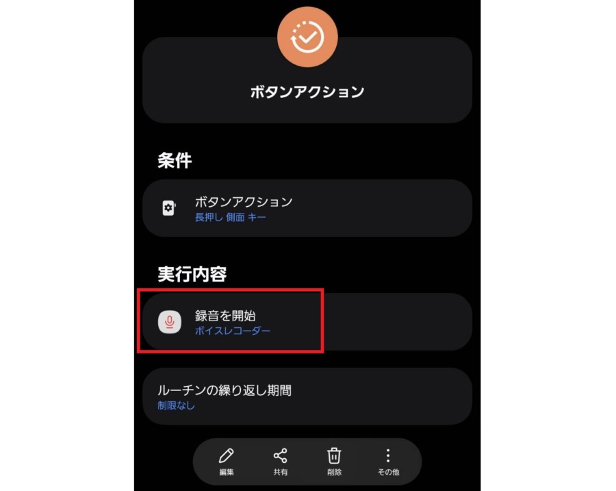 電源ボタン長押しでのボイスレコーダー録音開始は純正カスタマイズアプリGood LockのRoutine+を使用すれば可能。